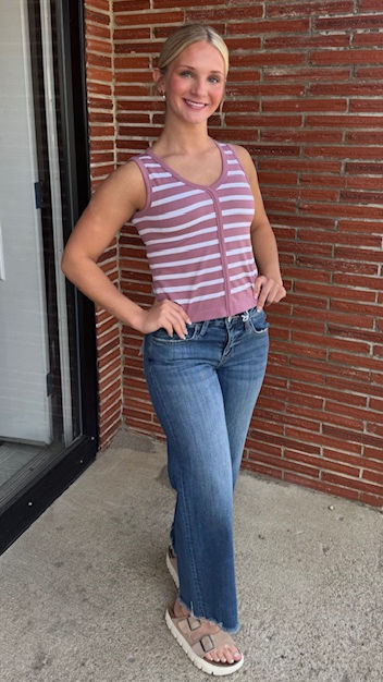 Yelete Stripe V Neck Cropped Sleeveless Top Mauve